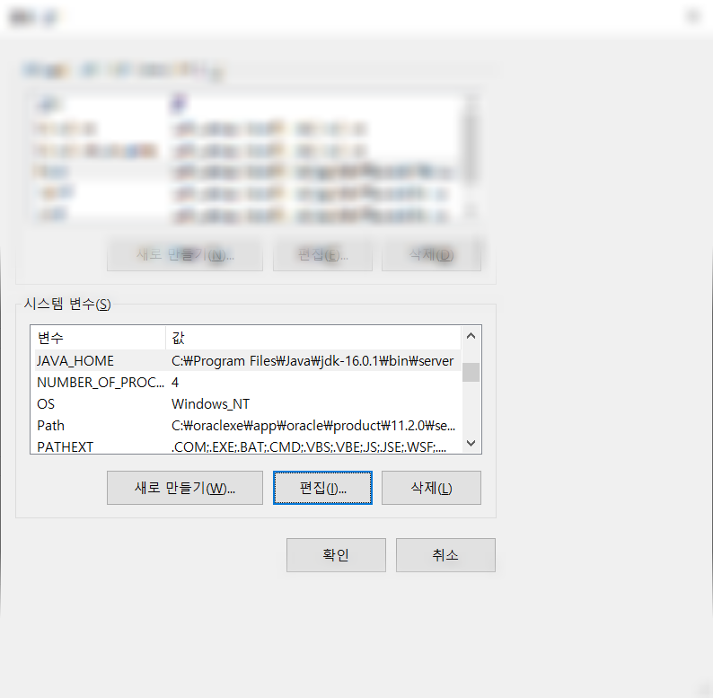 시스템 변수에서 추가하고, 시스템 변수에서 path에 적었던 경로도 지워줌